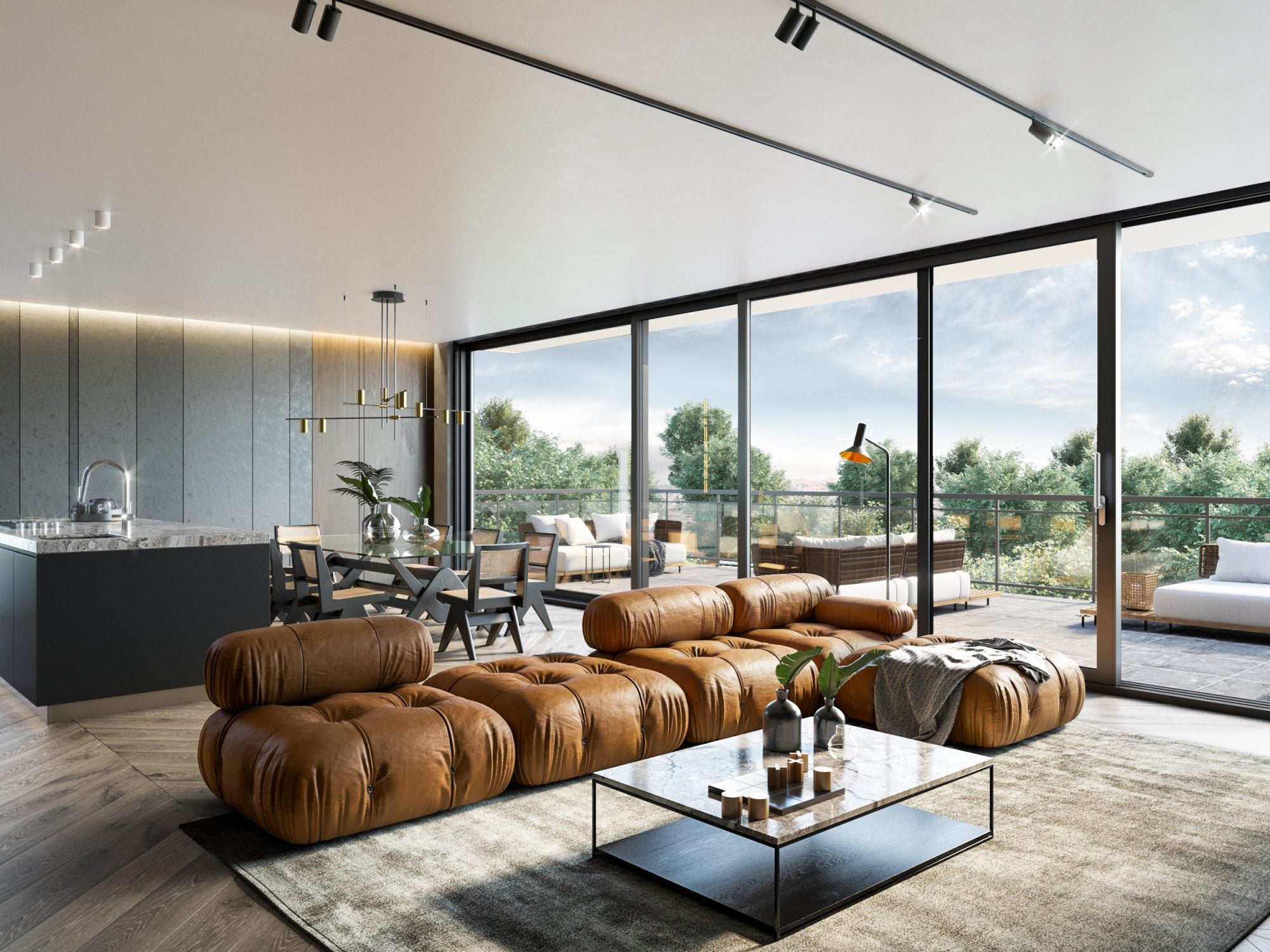 This home is flawlessly connected to its surroundings. Entire walls are replaced by glass to create an airy feeling that flows throughout the home